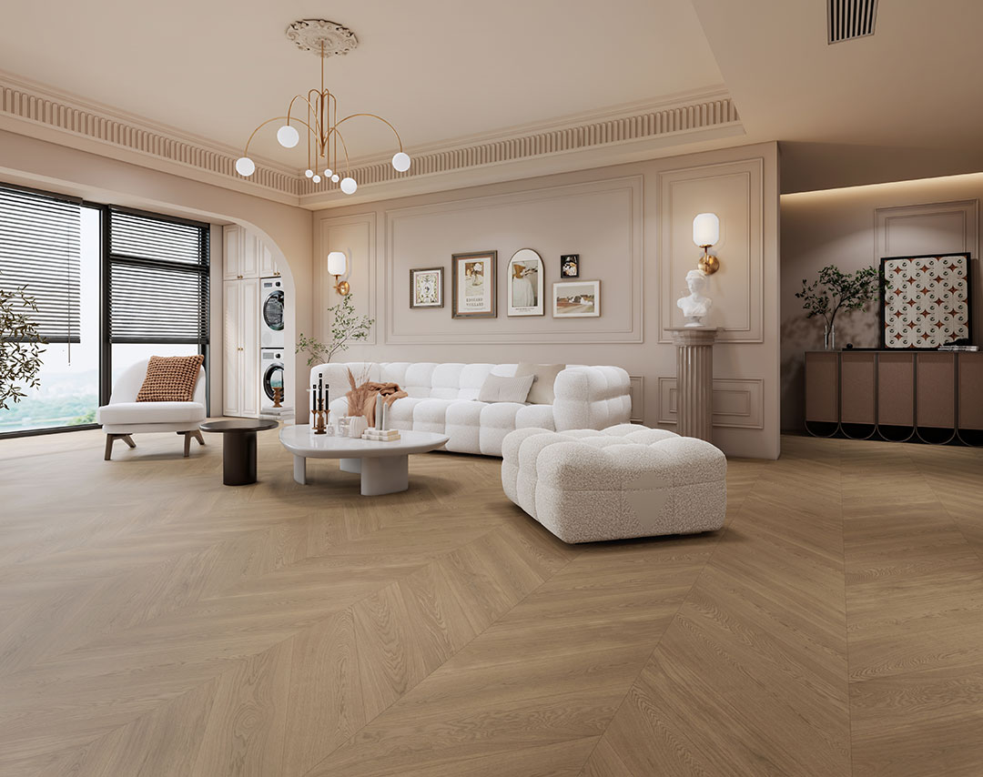 甜甜的奶油色,精致的魚(yú)骨拼,不同的光線下得到的是不同的溫柔投射。干凈利落的同時(shí)又十分柔和,像四季中最宜人的春天 ,讓人不知不覺(jué)便在居家空間中獲得精神上更好的放松。