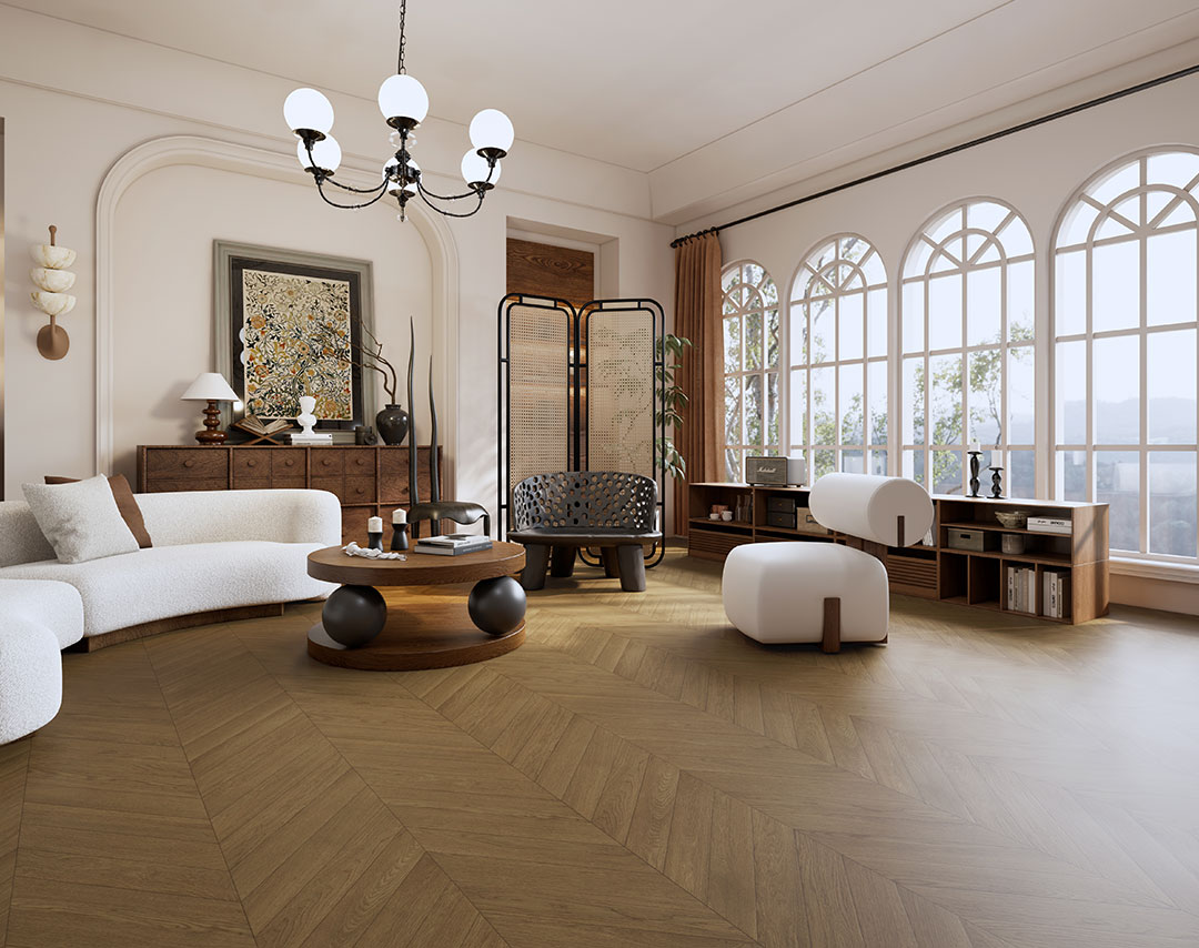 來自自然美學(xué)的靈感,鱗次櫛比的魚骨拼展現(xiàn)著家居空間優(yōu)雅且靈動的氣質(zhì)。黃棕色調(diào)的魚骨拼,可以給家?guī)砀€(wěn)定愉悅的視覺體驗。沉浸宅家,讓喜歡的事成為生活。