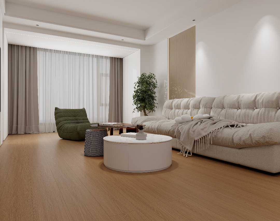 經(jīng)典的原木色,與山直相間的木紋相結(jié)合,營造出一種濃郁的實木質(zhì)感,為空間帶來一種溫馨而親切的氛圍。這樣的地板鋪設在家中,不僅能夠提升家居的舒適度,更能夠讓人感受到一種由內(nèi)而外的幸福感,仿佛置身于大自然的懷抱之中。