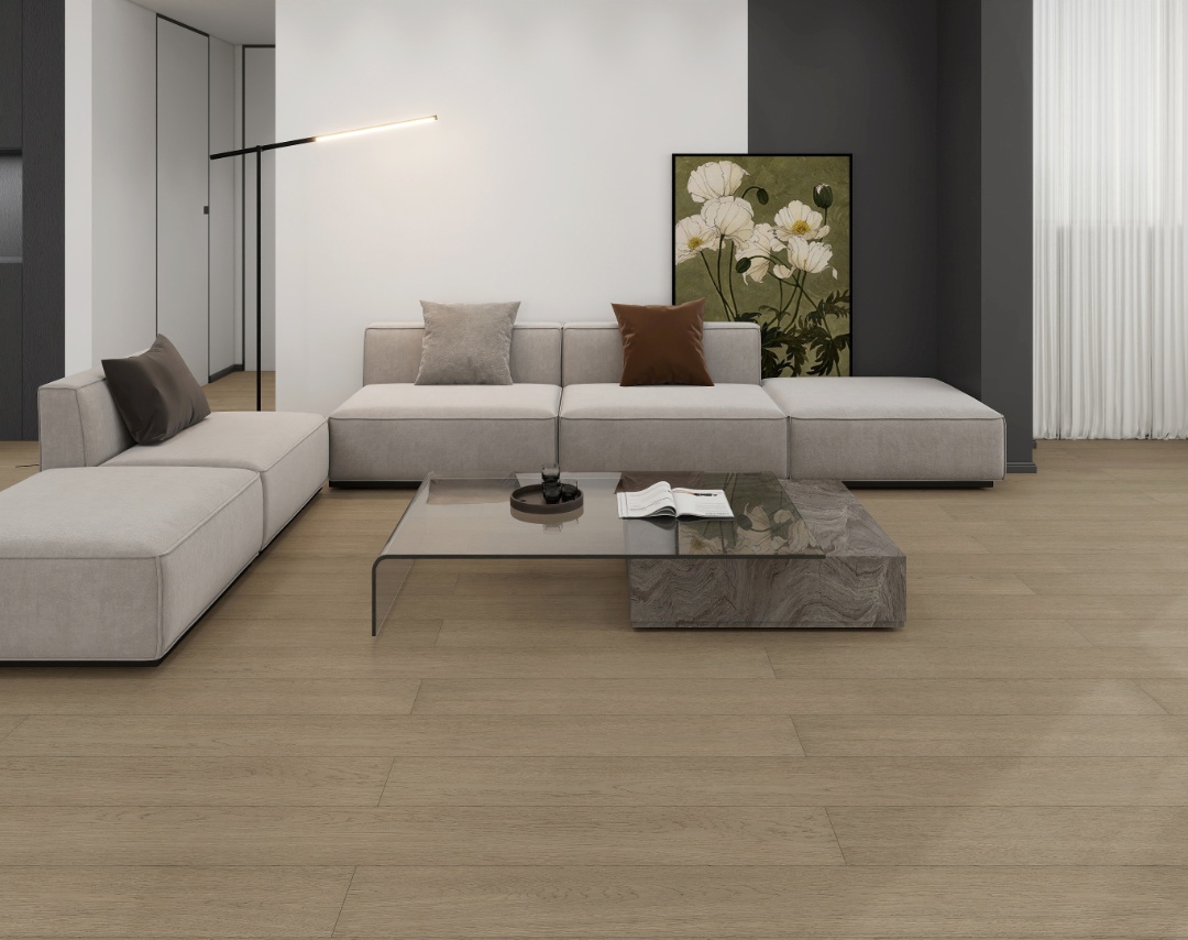 顏色不張揚也不沉悶,它在視覺上給人一種冷靜、沉穩(wěn)的感覺,同時又具有一定的時尚感和現代感,能夠很好地融入各種裝修風格中,展現出低調高雅的氣質,與傳統的深色或淺色木地板相比,這一款木地板的顏色更加獨特,能夠為空間增添一份別樣的色彩。