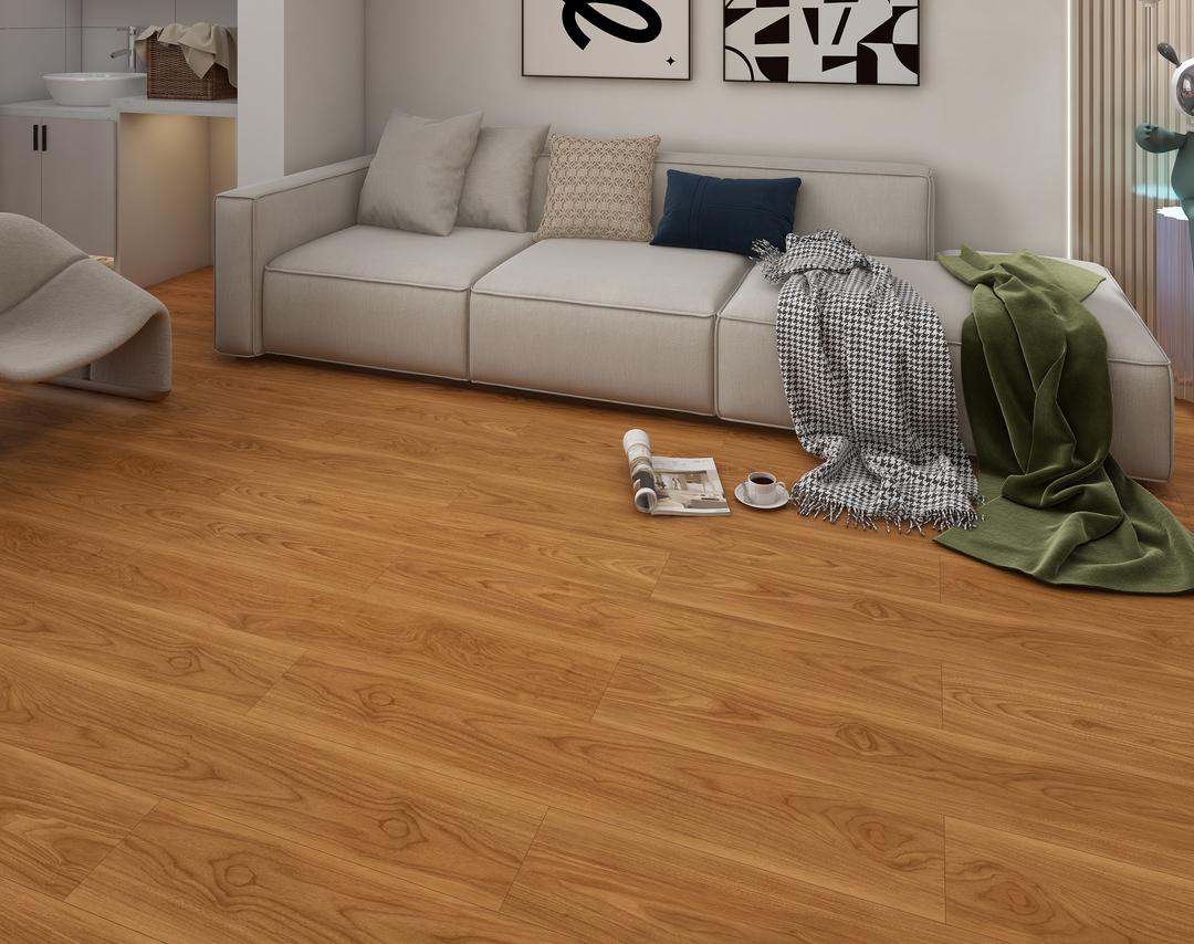 淺棕色地板宛如秋日午后灑落的柔和光暈,為空間奠定溫暖基調(diào)。與米白色針織蓋毯、做舊木紋柜體搭配時,可凸顯慵懶的田園詩意;若加入霧霾藍抱枕與不規(guī)則鏡面裝飾,則瞬間跳脫出輕法式的浪漫情調(diào),展現(xiàn)收放自如的設(shè)計巧思。